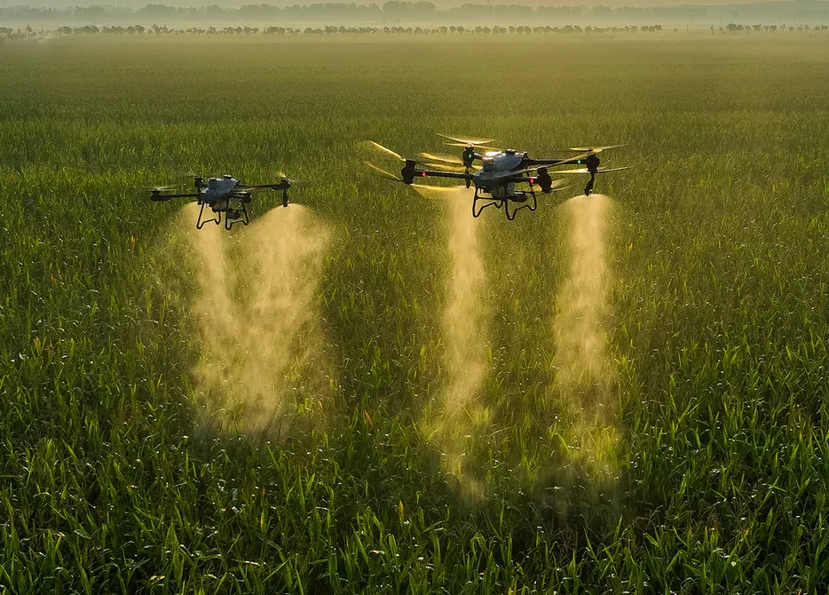 Los drones pueden ser utilizados para la fumigación y abonado de los cultivos y árboles. Estos drones están equipados con dispositivos de pulverización y depósitos de gran capacidad para tratamientos de líquidos y sólidos.